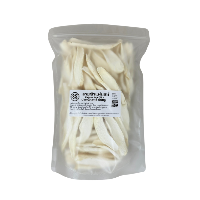 ฮวยซัวแผ่น (Huai Shan / 淮山片) หรือที่รู้จักกันในชื่อ Chinese Yam คือสมุนไพรจีนที่ได้รับความนิยมมายาวนานในการแพทย์แผนจีน มีรสหวาน มัน อุ่นเล็กน้อย ใช้ส่วนเหง้าใต้ดินที่ผ่านการหั่นเป็นแผ่นและอบแห้งอย่างพิถีพิถัน ฮวยซัวถือเป็นสมุนไพรที่ช่วยบำรุงร่างกายอย่างอ่อนโยน โดยเฉพาะการบำรุงม้าม ปอด และไต ช่วยให้ระบบย่อยอาหารทำงานดีขึ้น บรรเทาอาการท้องอืด แน่นท้อง และช่วยให้ร่างกายดูดซึมสารอาหารได้ดีขึ้น อีกทั้งยังมีสรรพคุณช่วยลดระดับน้ำตาลในเลือด เสริมภูมิคุ้มกัน และฟื้นฟูพลังหลังเจ็บป่วย เหมาะสำหรับผู้ที่ต้องการดูแลสุขภาพในชีวิตประจำวัน
